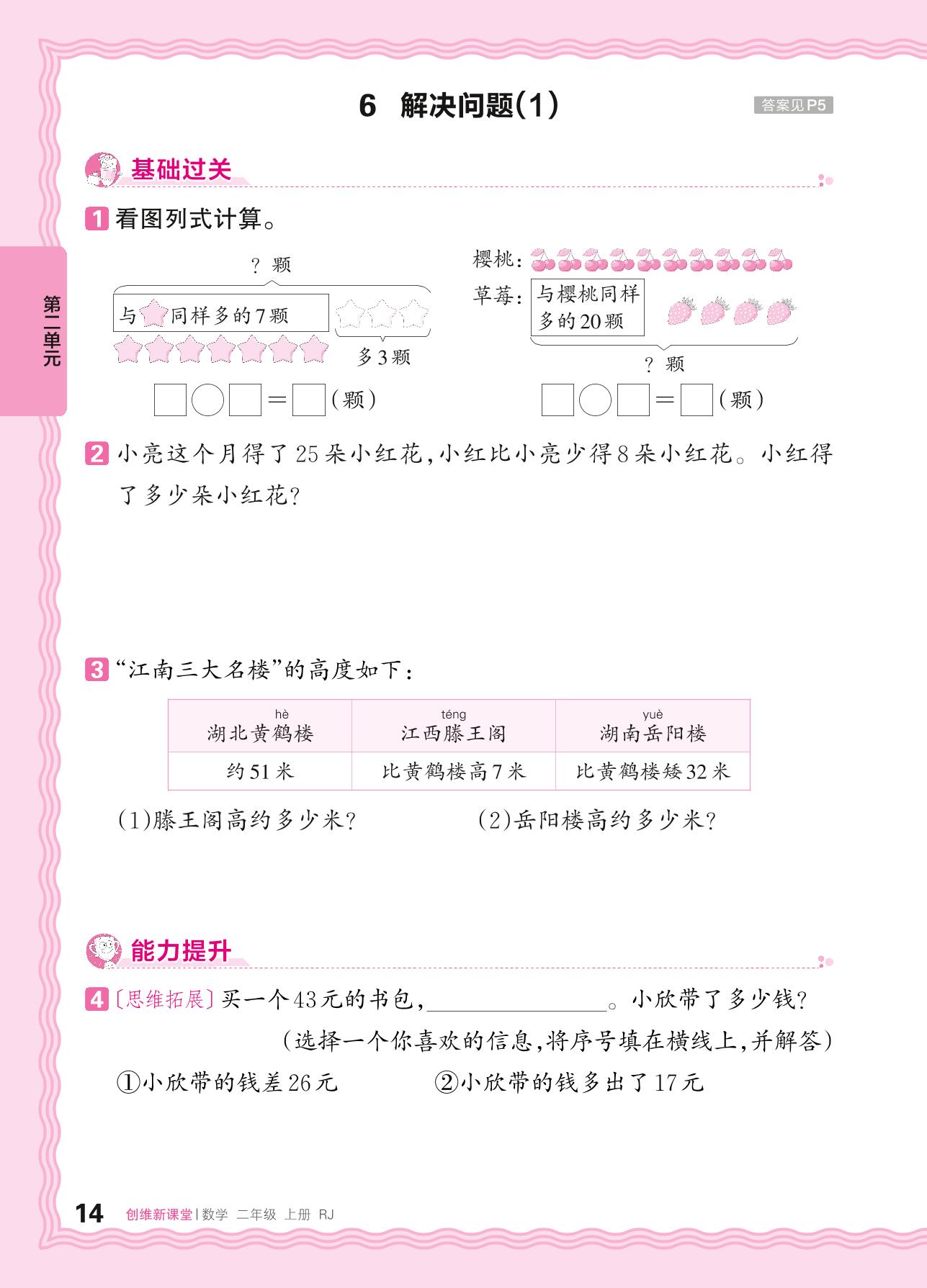 2024秋上册二年级数学人教版 第二单元 100以内的加法和减法(二)——6. 解决问题(1)
