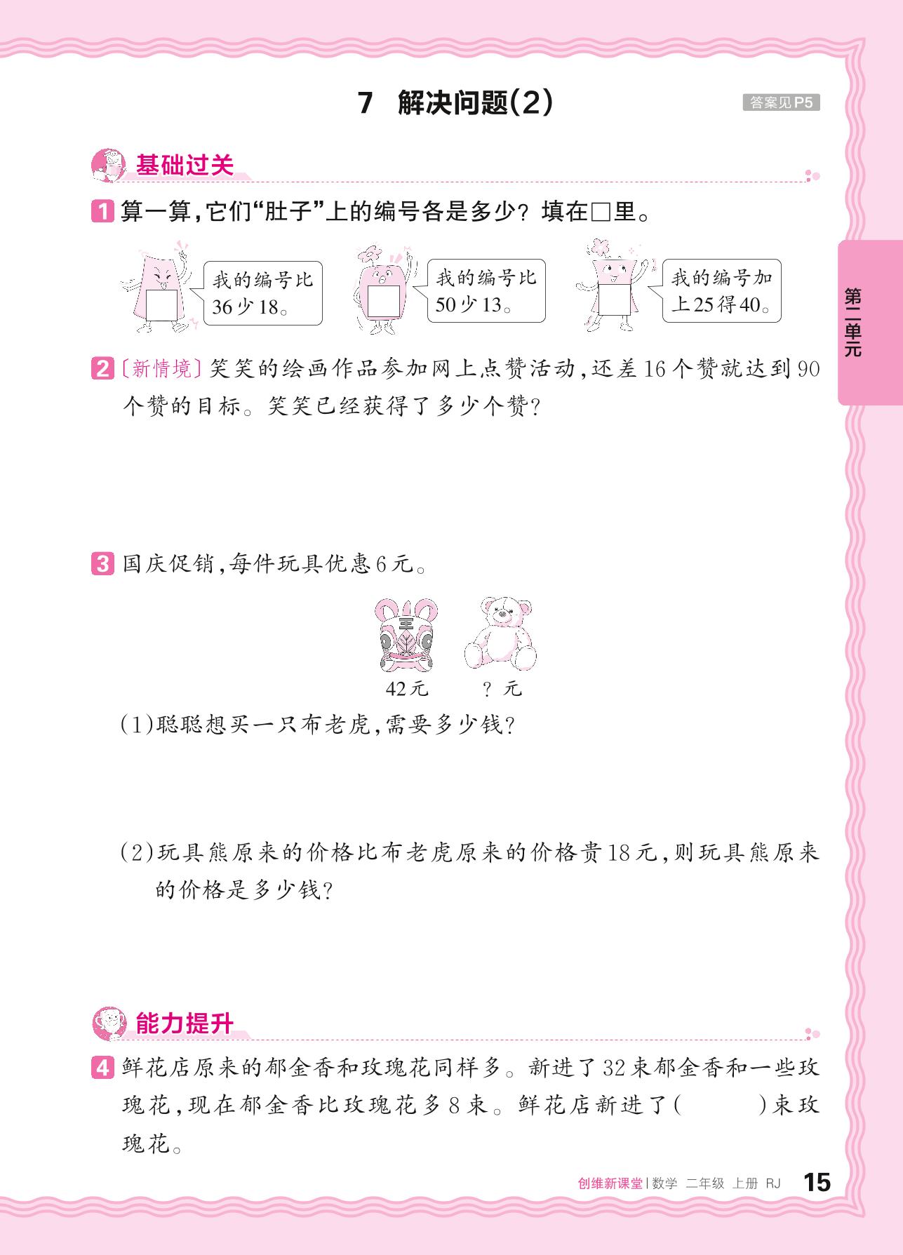2024秋上册二年级数学人教版 第二单元 100以内的加法和减法(二)——7. 解决问题(2)