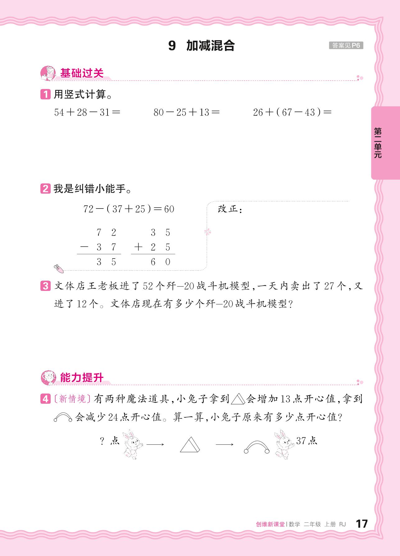 2024秋上册二年级数学人教版 第二单元 100以内的加法和减法(二)——9. 加减混合