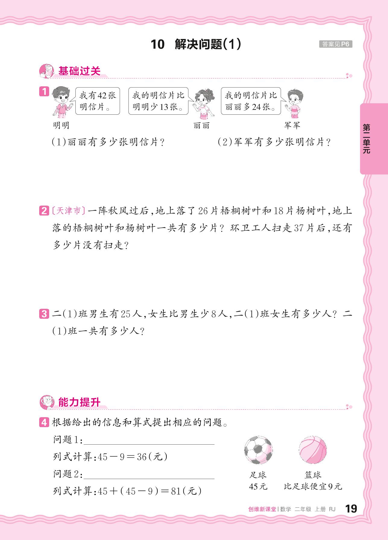 2024秋上册二年级数学人教版 第二单元 100以内的加法和减法(二)——10. 解决问题(1)