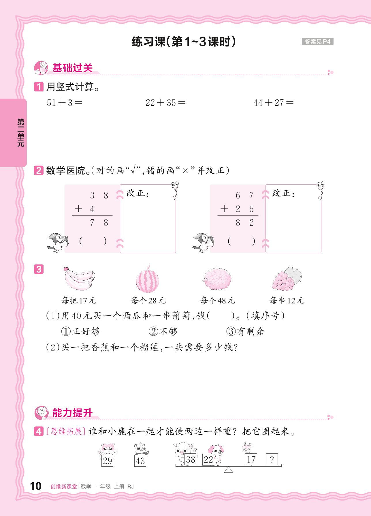 2024秋上册二年级数学人教版 第二单元 100以内的加法和减法(二)——加法练习课