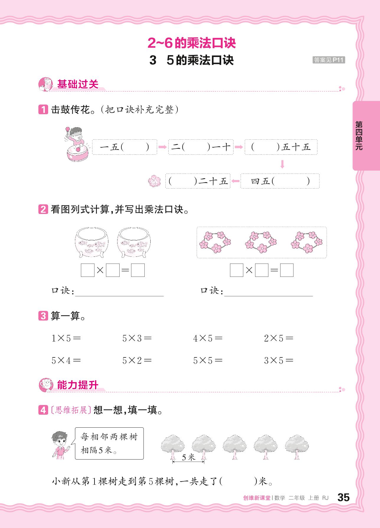 2024秋上册二年级数学人教版 第四单元 表内乘法(一)——3. 5的乘法口诀