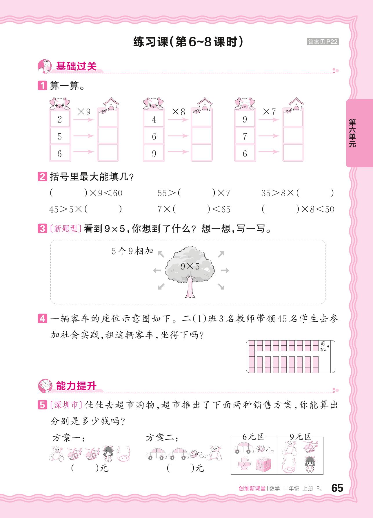 2024秋上册二年级数学人教版 第六单元 表内乘法(二)——9的乘法口诀及解决问题练习课