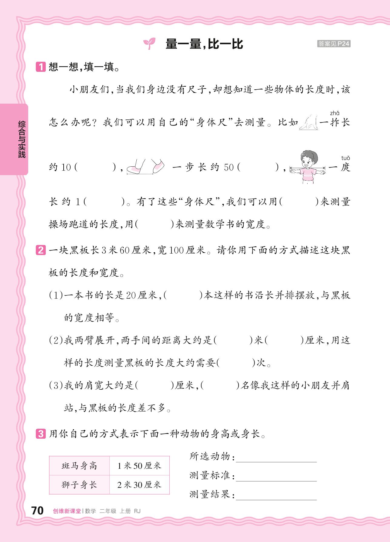 2024秋上册二年级数学人教版 第六单元 表内乘法(二)——量一量,比一比