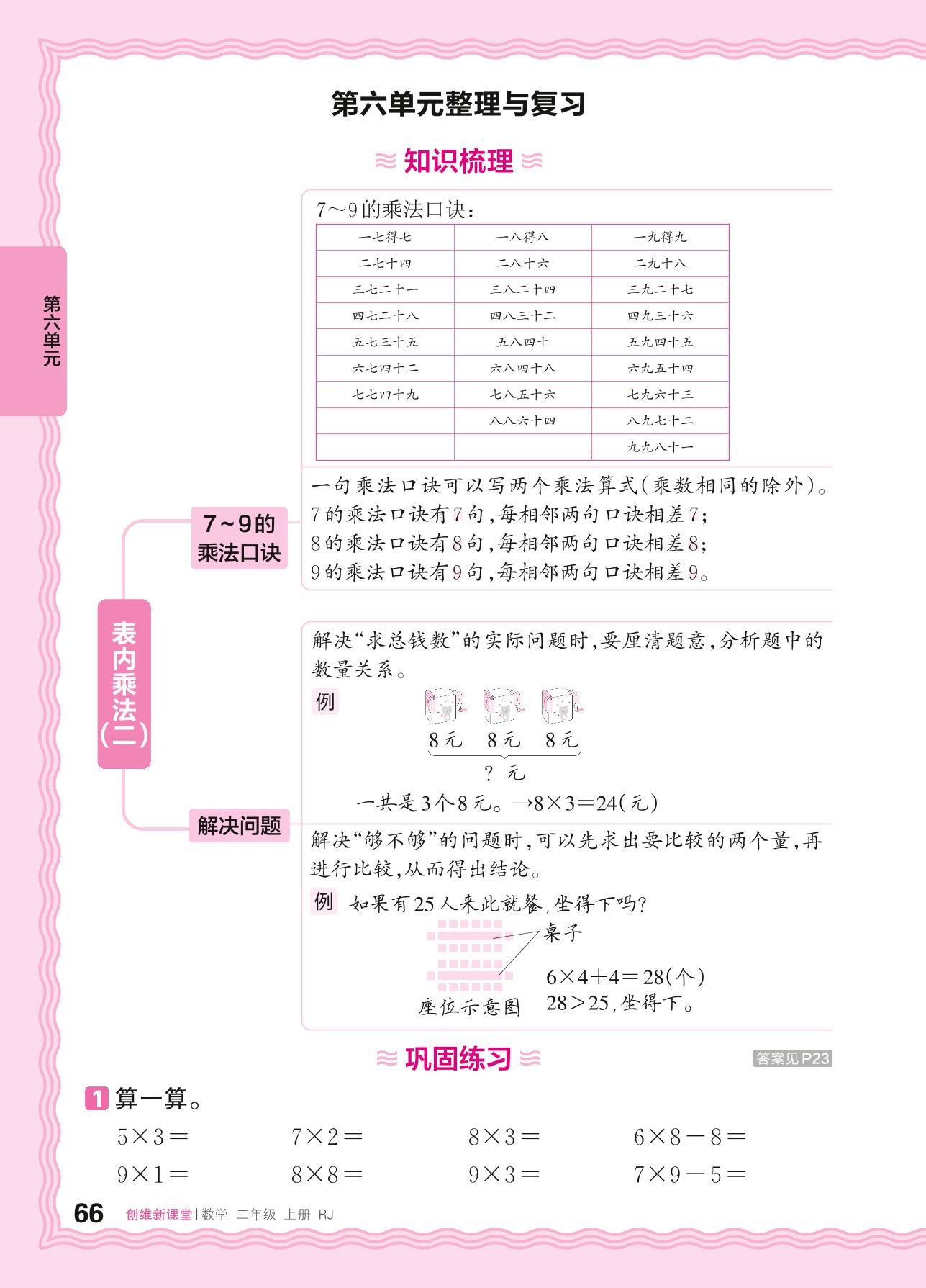 2024秋上册二年级数学人教版 第六单元整理与复习