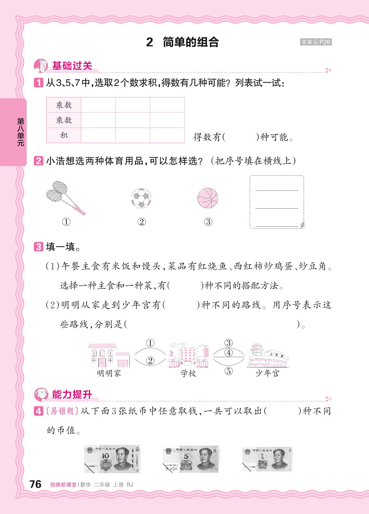 2024秋上册二年级数学人教版 第八单元 数学广角 搭配(一)——2. 简单的组合_R240816143459326