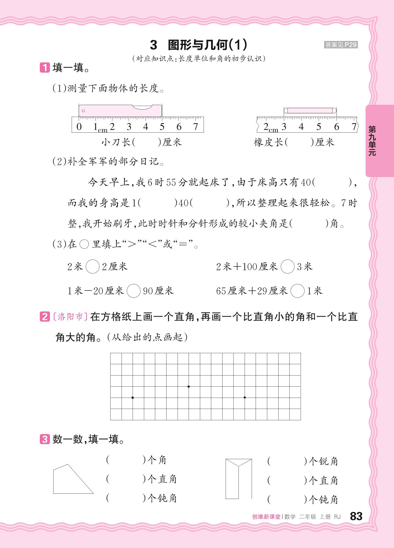 2024秋上册二年级数学人教版 第九单元 总复习——3. 图形与几何(1)