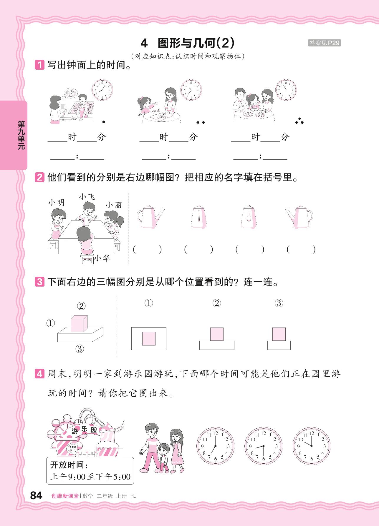 2024秋上册二年级数学人教版 第九单元 总复习——4. 图形与几何(2)