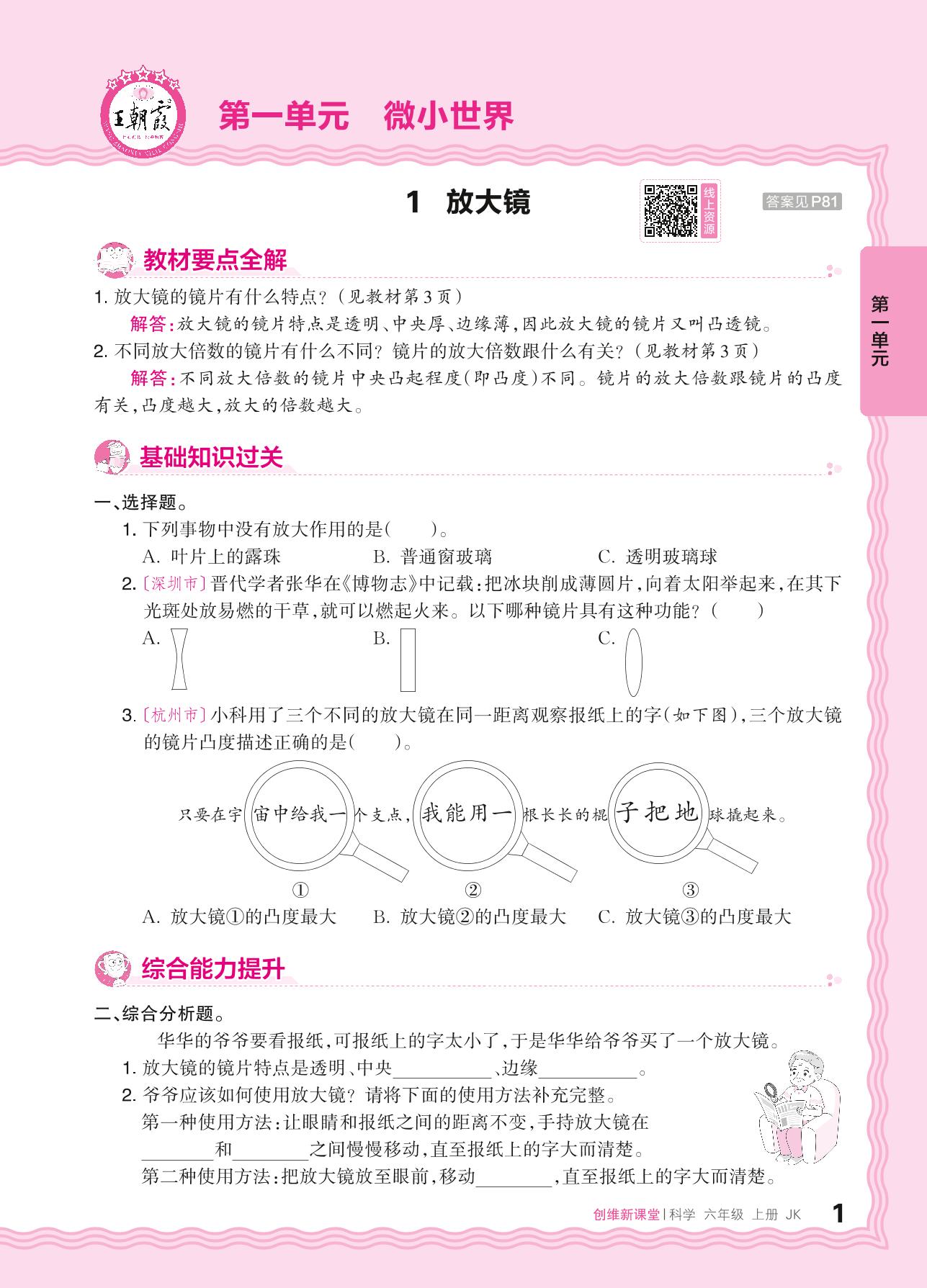 2024秋上册六年级科学教科版 第一单元 微小世界——1. 放大镜