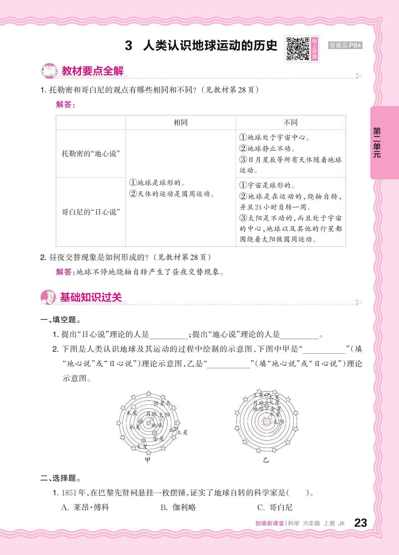 2024秋上册六年级科学教科版 第二单元 地球的运动——3. 人类认识地球运动的历史
