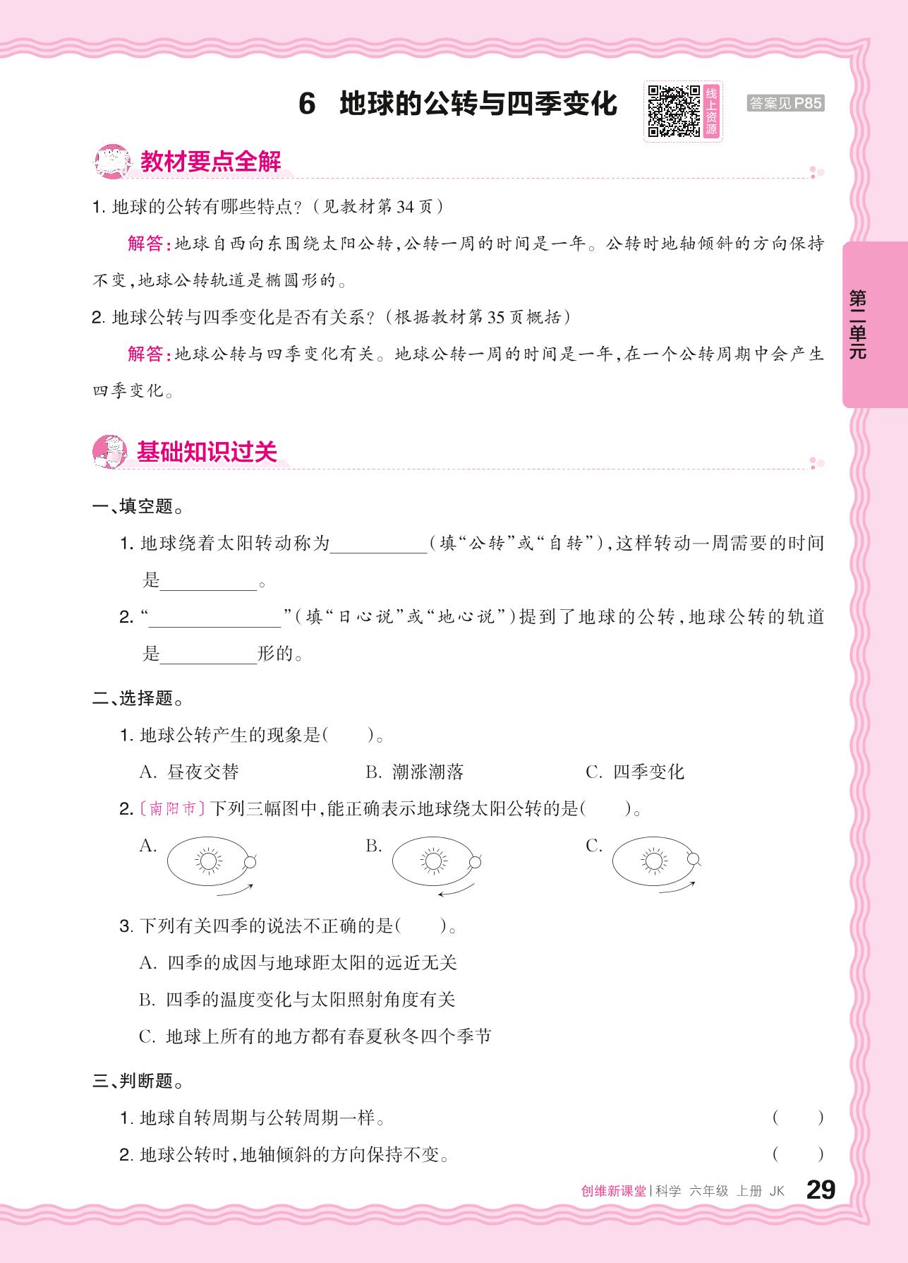 2024秋上册六年级科学教科版 第二单元 地球的运动——6. 地球的公转与四季变化