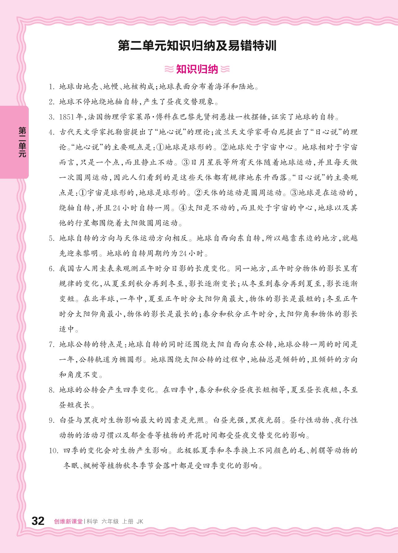 2024秋上册六年级科学教科版 第二单元知识归纳及易错特训