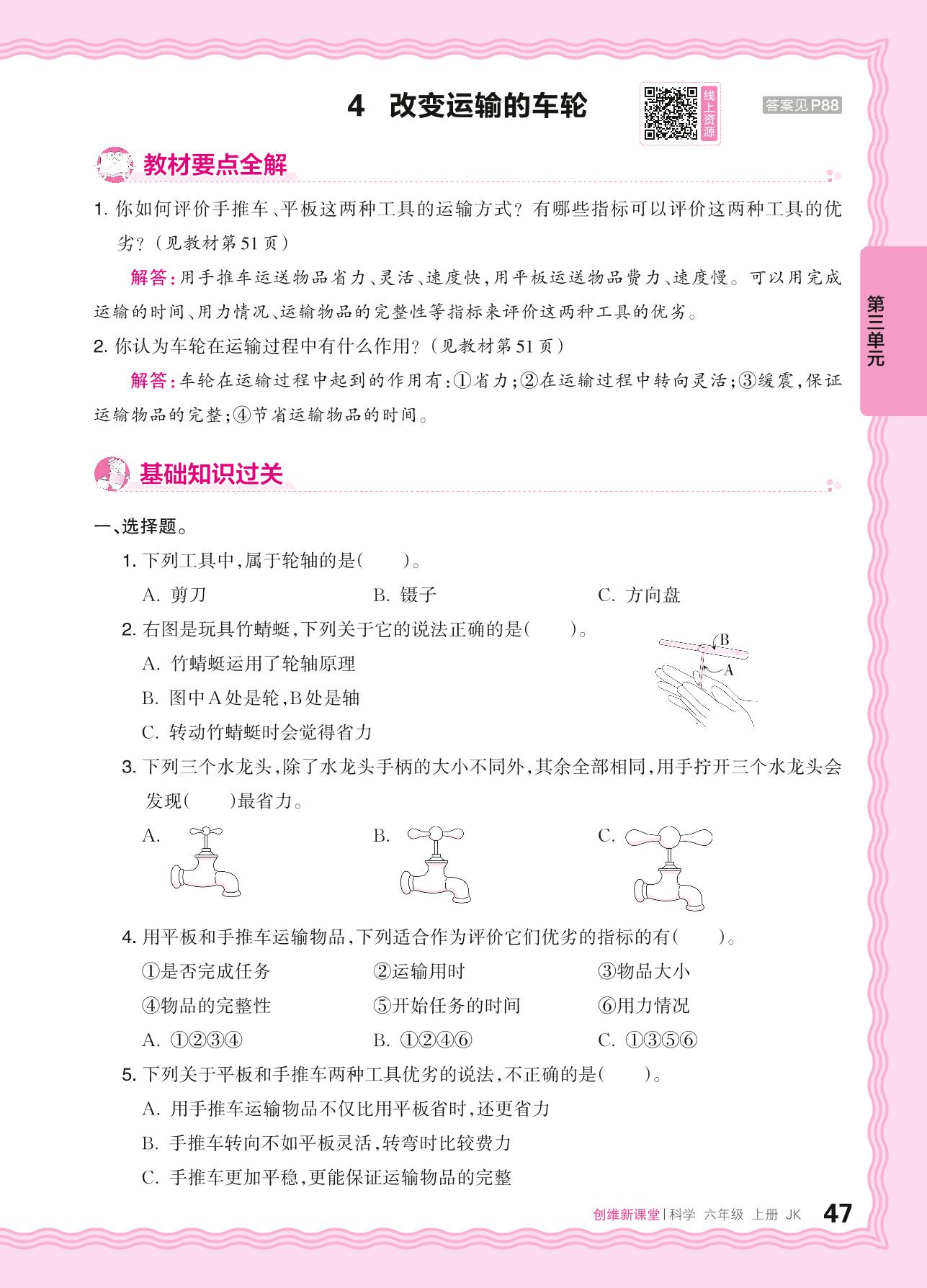 2024秋上册六年级科学教科版 第三单元 工具与技术——4. 改变运输的车轮