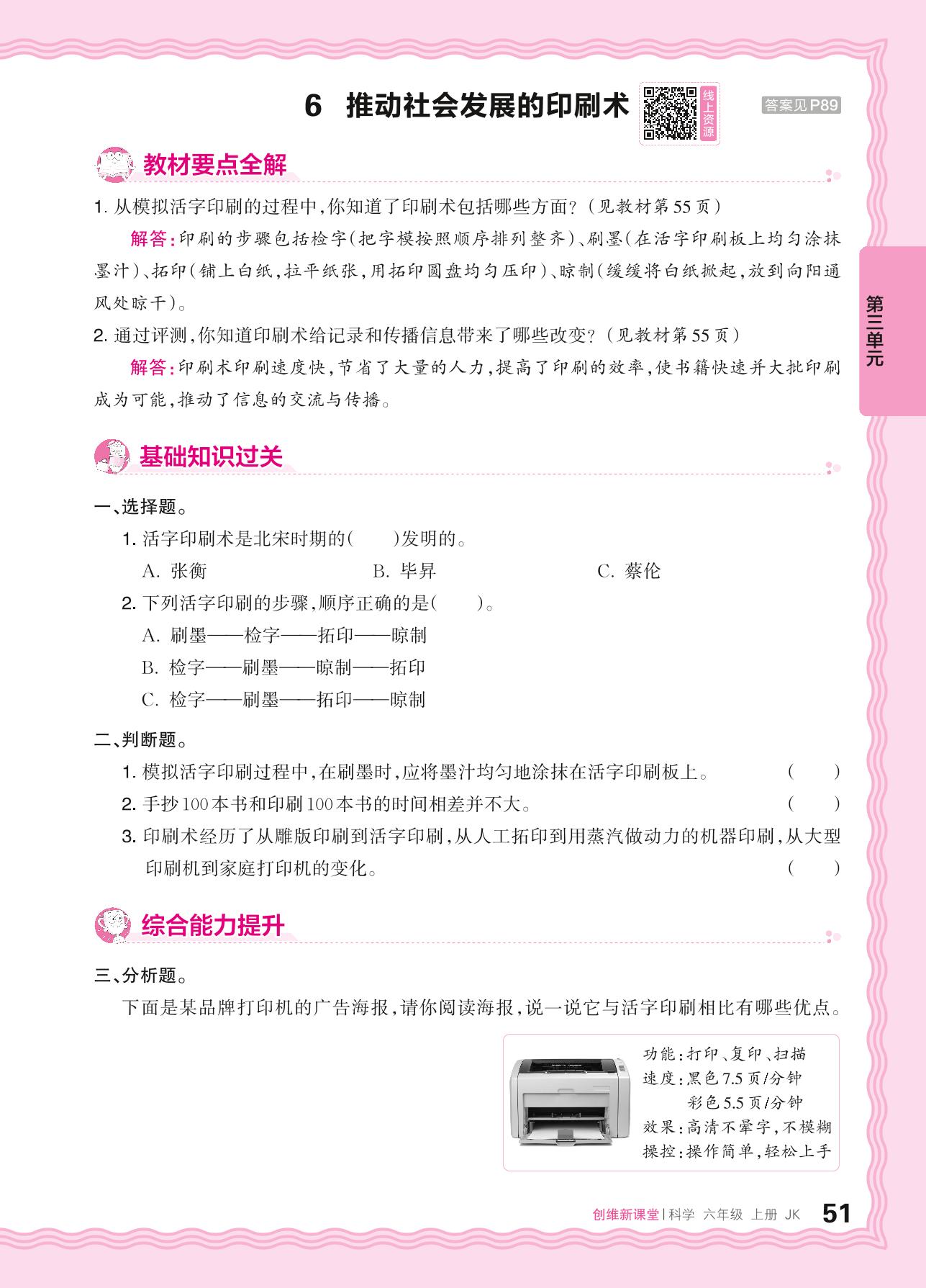 2024秋上册六年级科学教科版 第三单元 工具与技术——6. 推动社会发展的印刷术