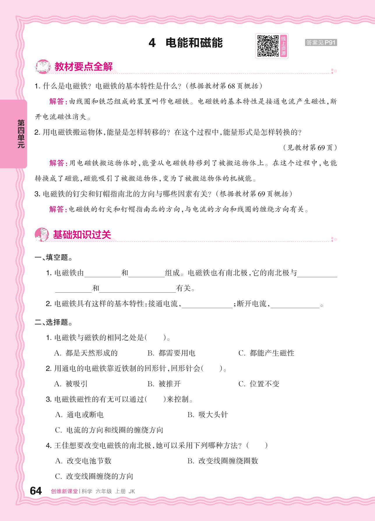 2024秋上册六年级科学教科版 第四单元 能量——4. 电能和磁能