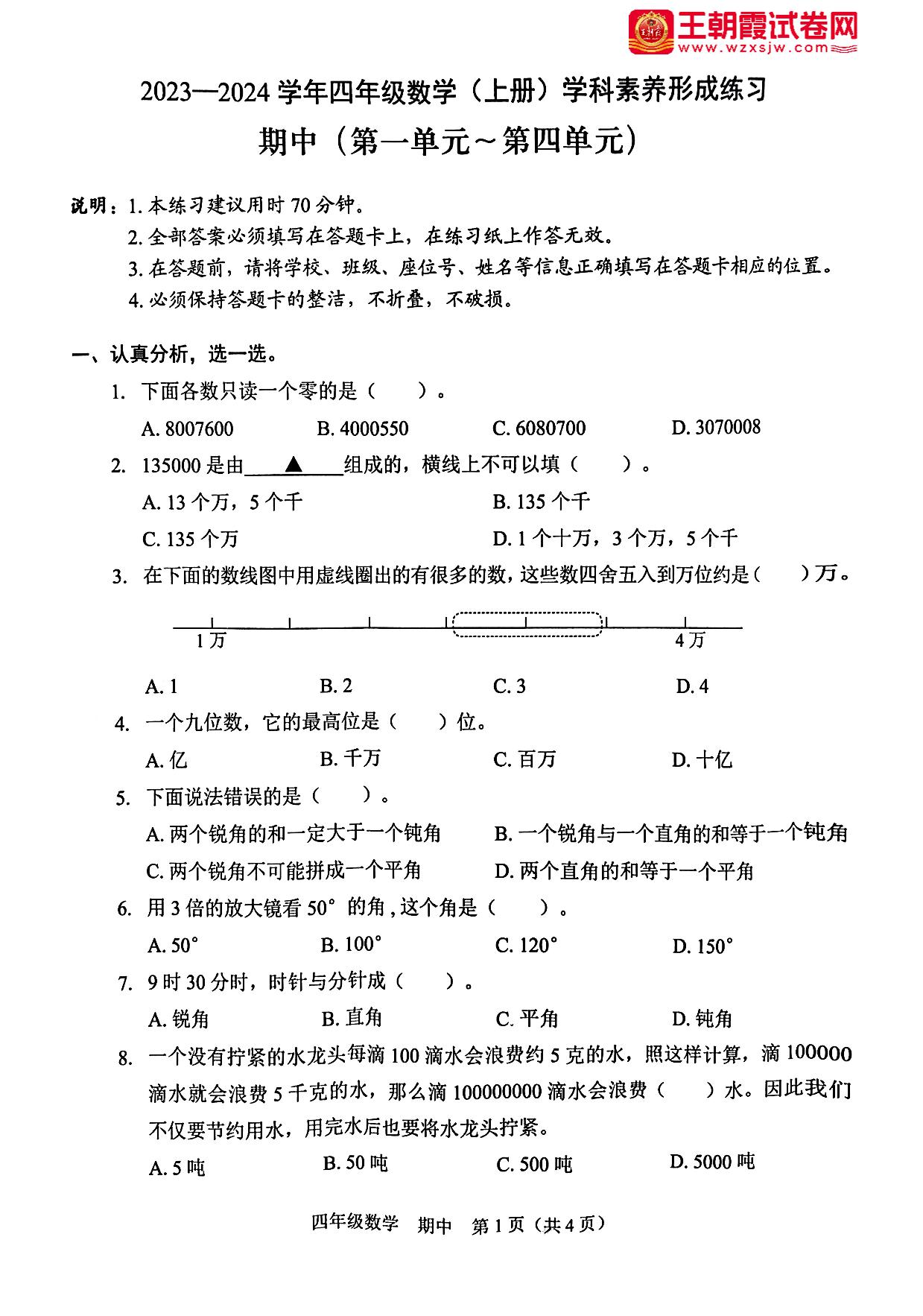 广东省深圳市龙岗区宏扬学校2023-2024学年上学期期中学科素养试题四年级数学(北师版)