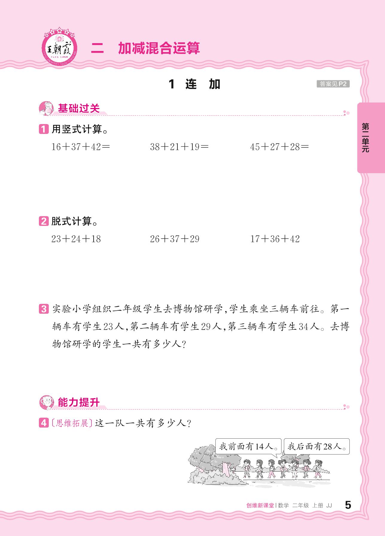 2024秋上册二年级数学冀教版 第二单元 加减混合运算——1. 连加