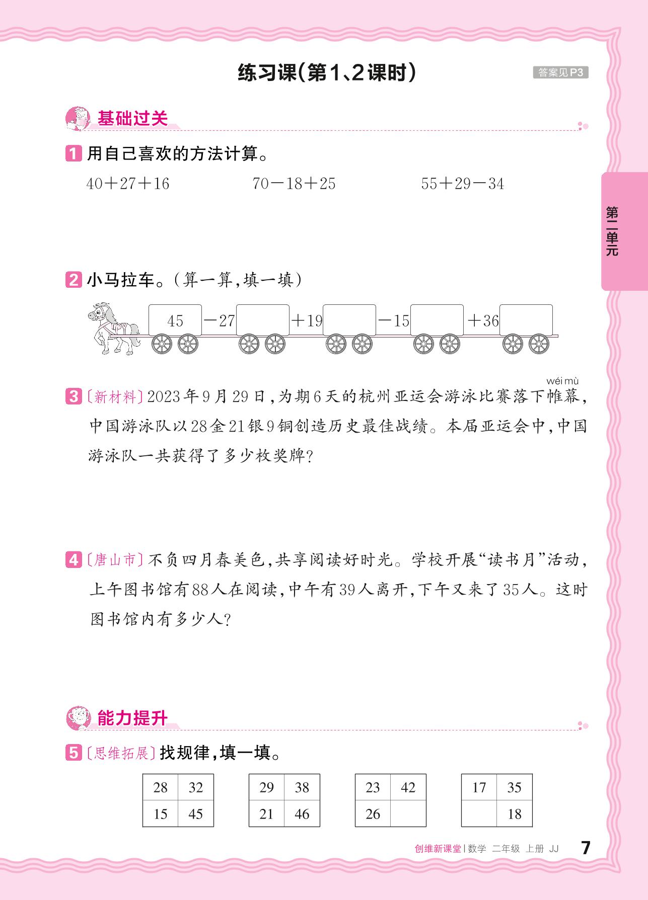 2024秋上册二年级数学冀教版 第二单元 加减混合运算——连加、加减混合运算练习课