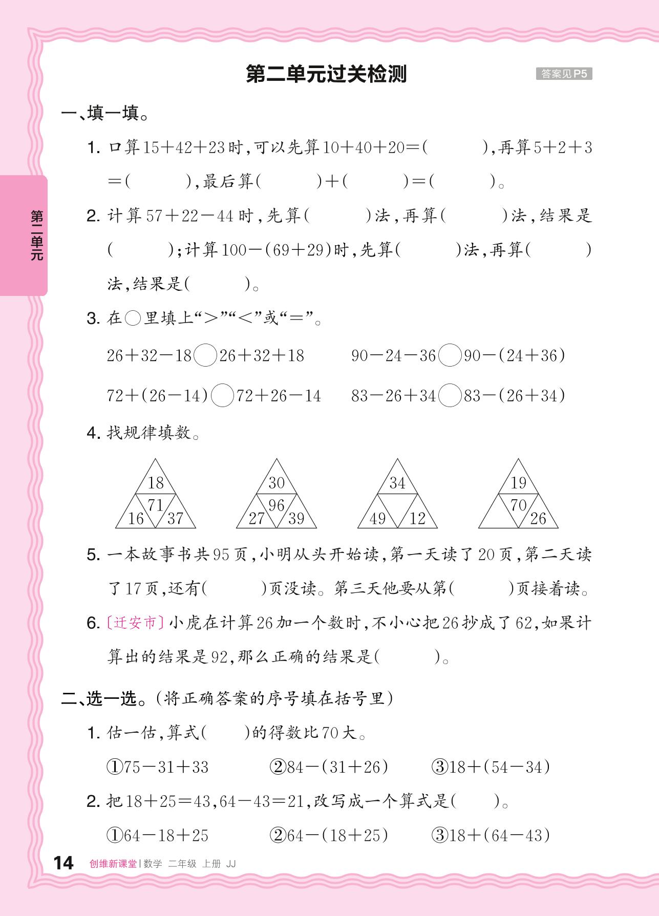 2024秋上册二年级数学冀教版 第二单元过关检测