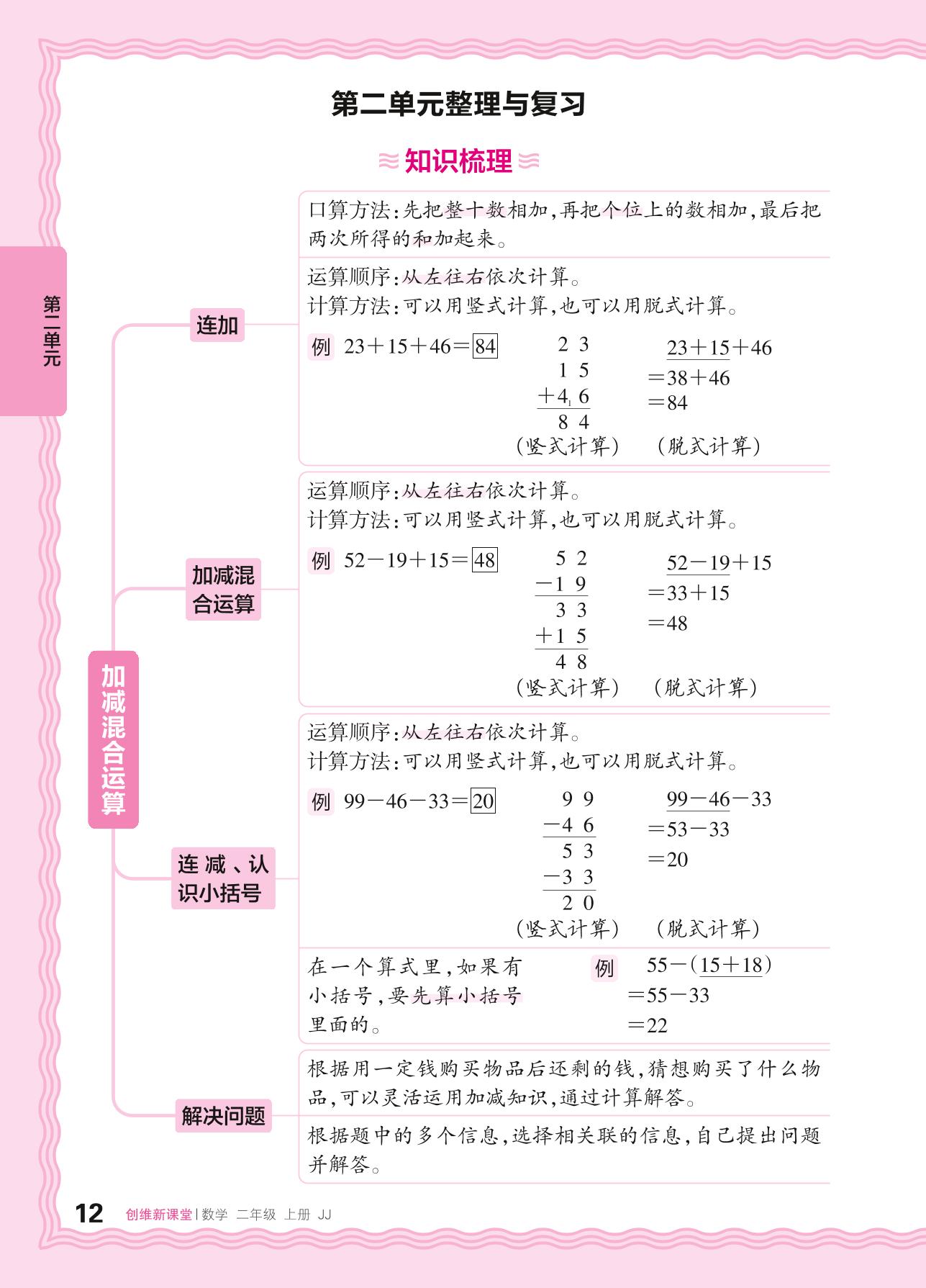 2024秋上册二年级数学冀教版 第二单元整理与复习
