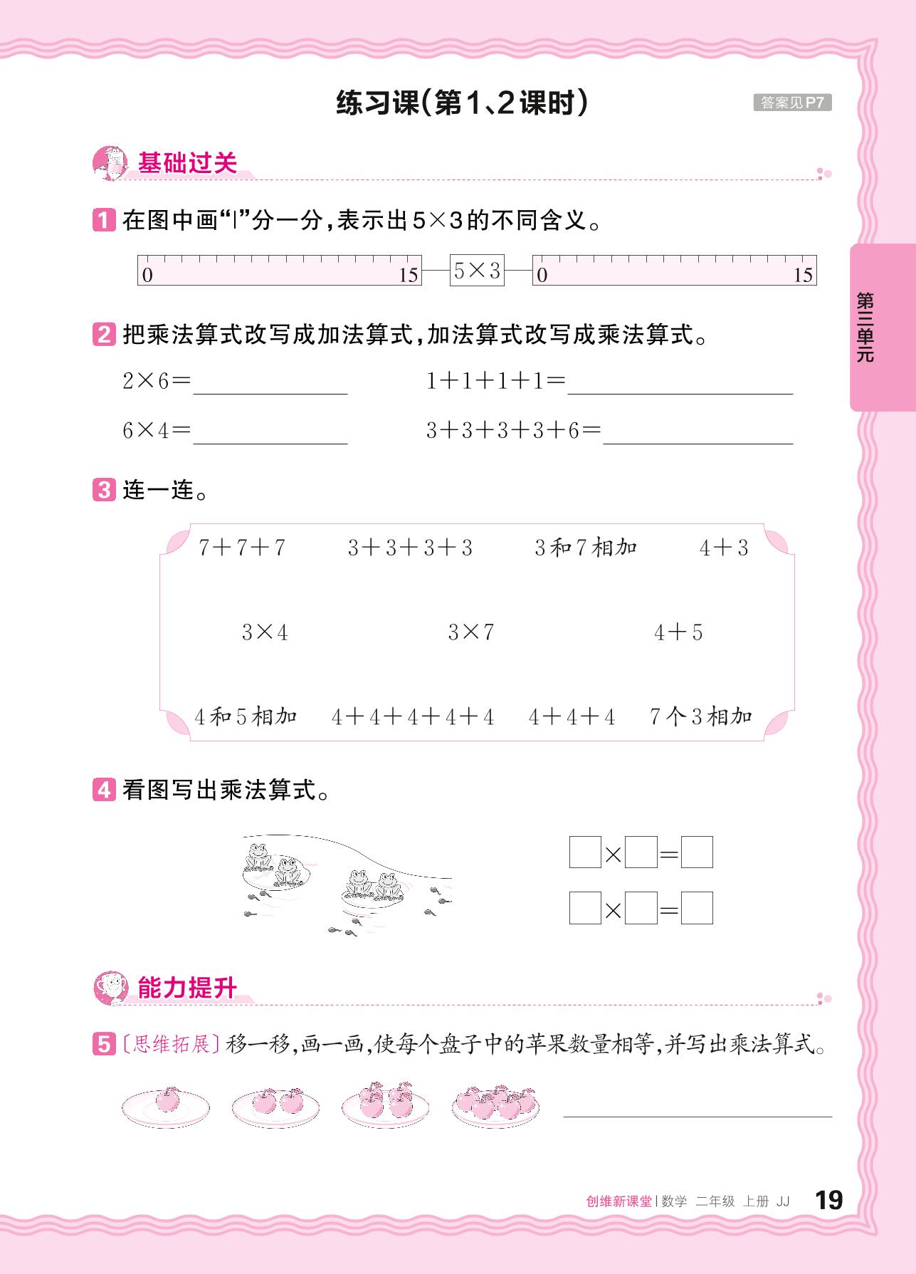 2024秋上册二年级数学冀教版 第三单元 表内乘法(一)——认识乘法练习课