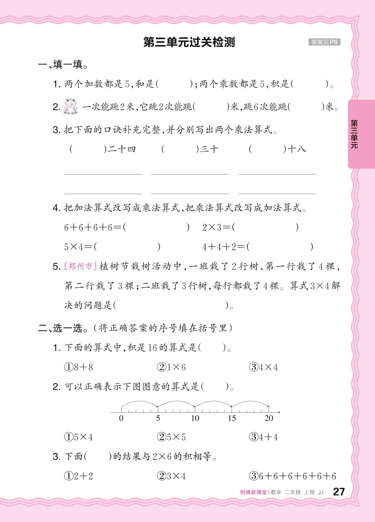 2024秋上册二年级数学冀教版 第三单元过关检测