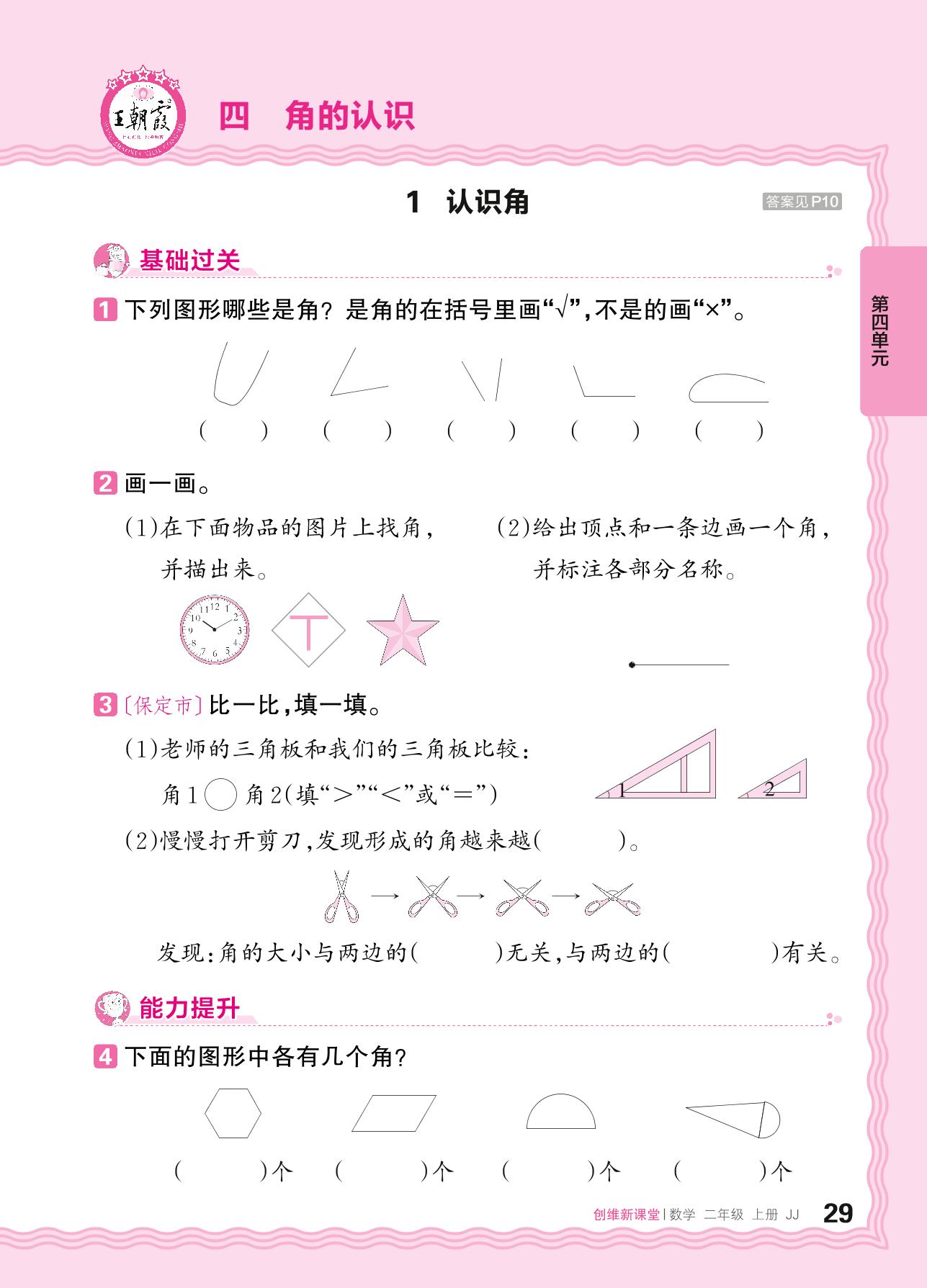 2024秋上册二年级数学冀教版 第四单元 角的认识——1. 认识角