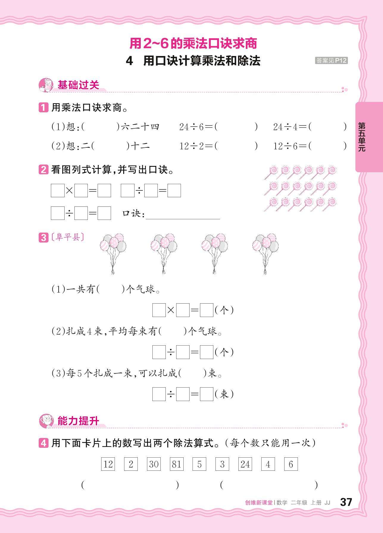 2024秋上册二年级数学冀教版 第五单元 表内除法(一)——4. 用口诀计算乘法和除法