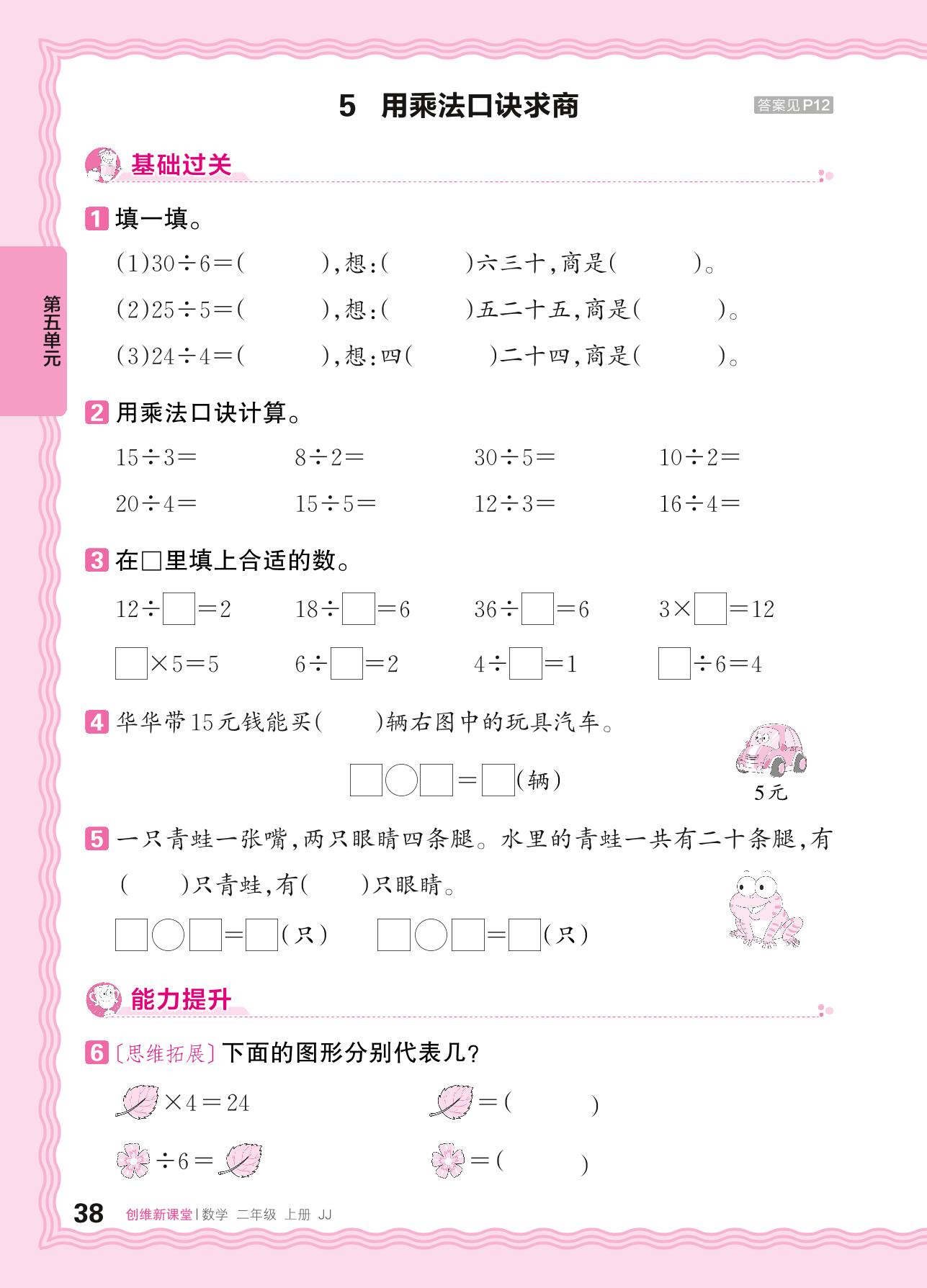 2024秋上册二年级数学冀教版 第五单元 表内除法(一)——5. 用乘法口诀求商
