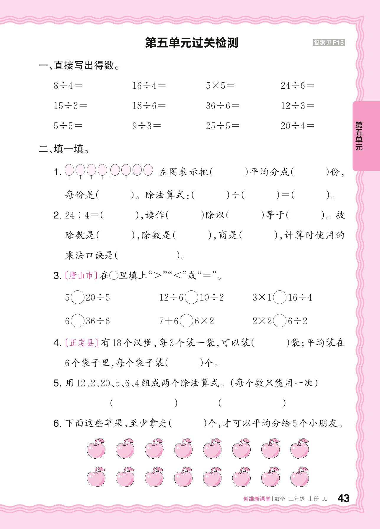 二年级数学冀教版上册单元卷