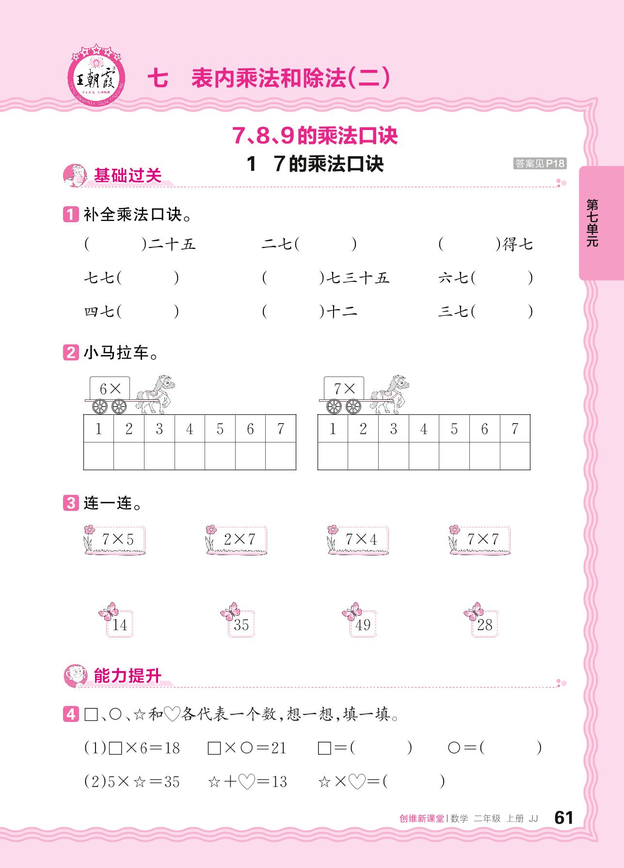 2024秋上册二年级数学冀教版 第七单元 表内乘法和除法(二)——1. 7的乘法口诀