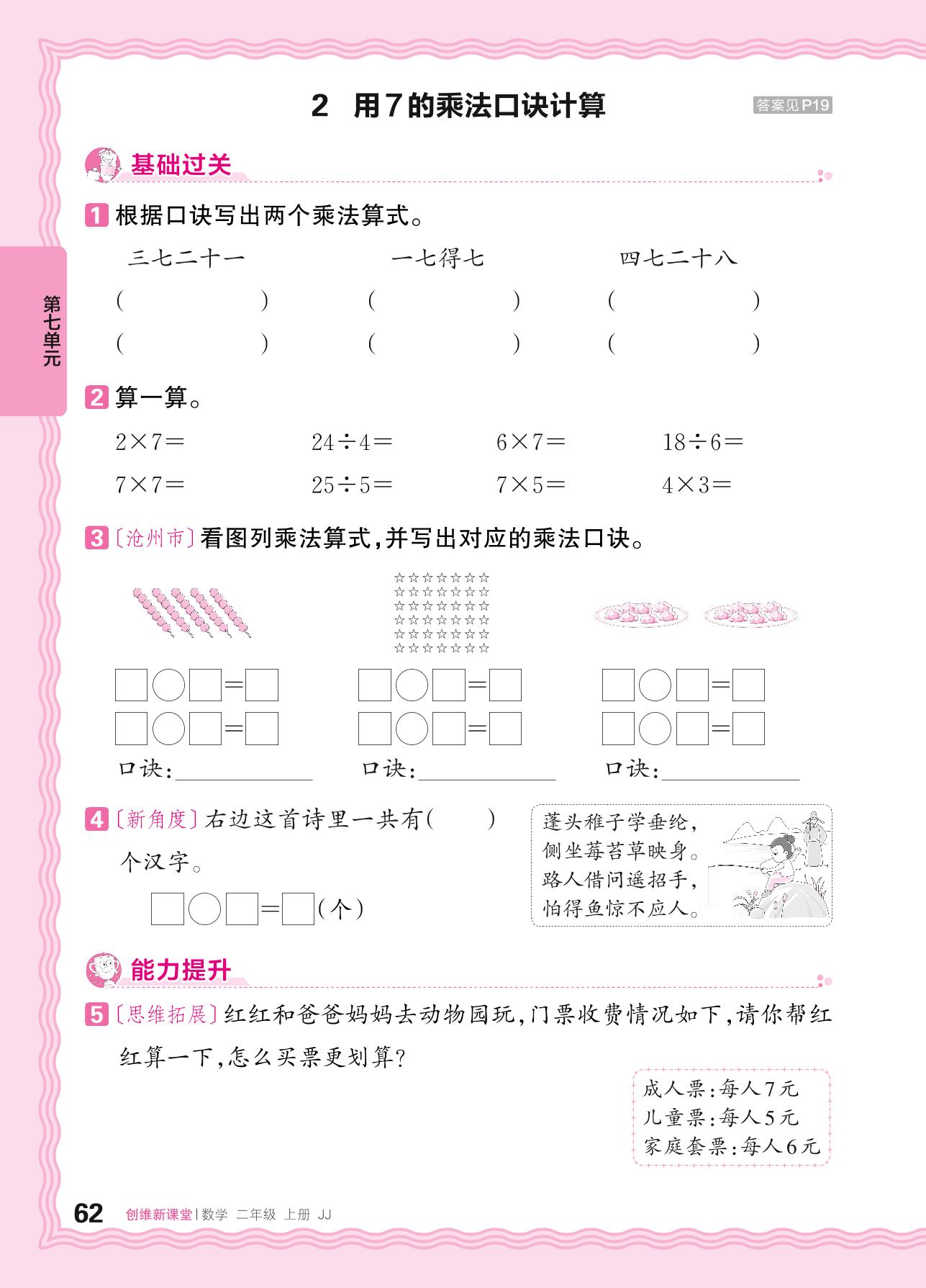 2024秋上册二年级数学冀教版 第七单元 表内乘法和除法(二)——2. 用7的乘法口诀计算