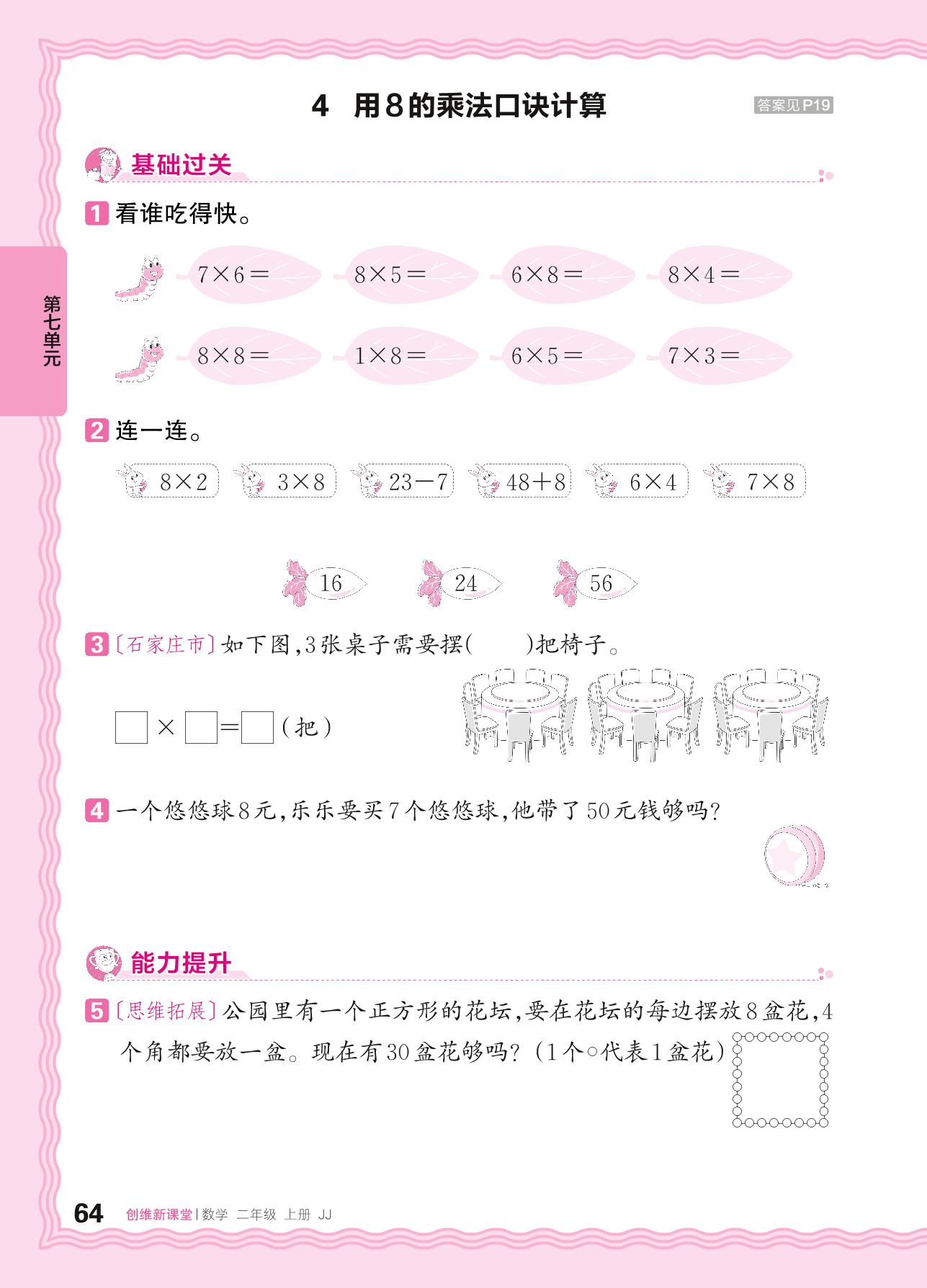 2024秋上册二年级数学冀教版 第七单元 表内乘法和除法(二)——4. 用8的乘法口诀计算
