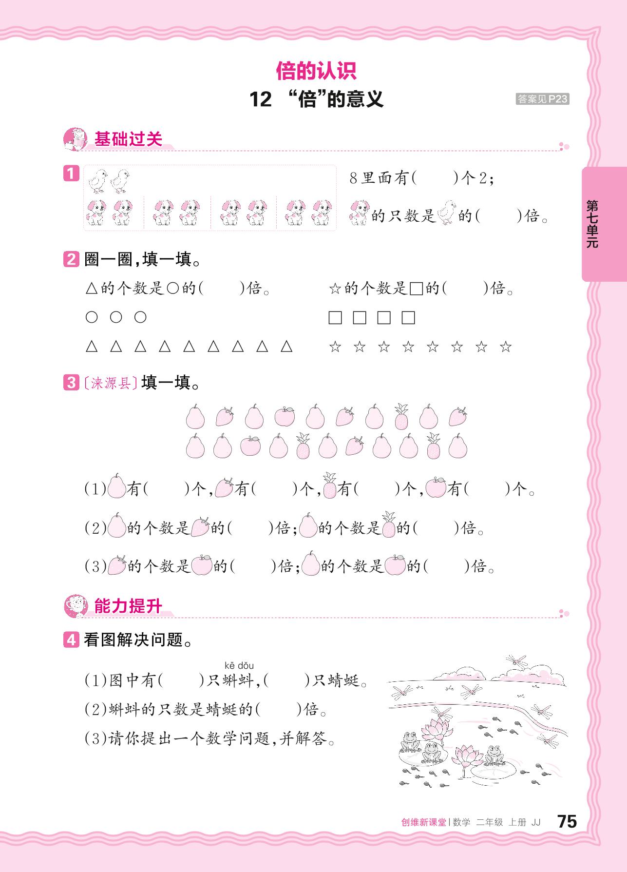 2024秋上册二年级数学冀教版 第七单元 表内乘法和除法(二)——12.“倍”的意义