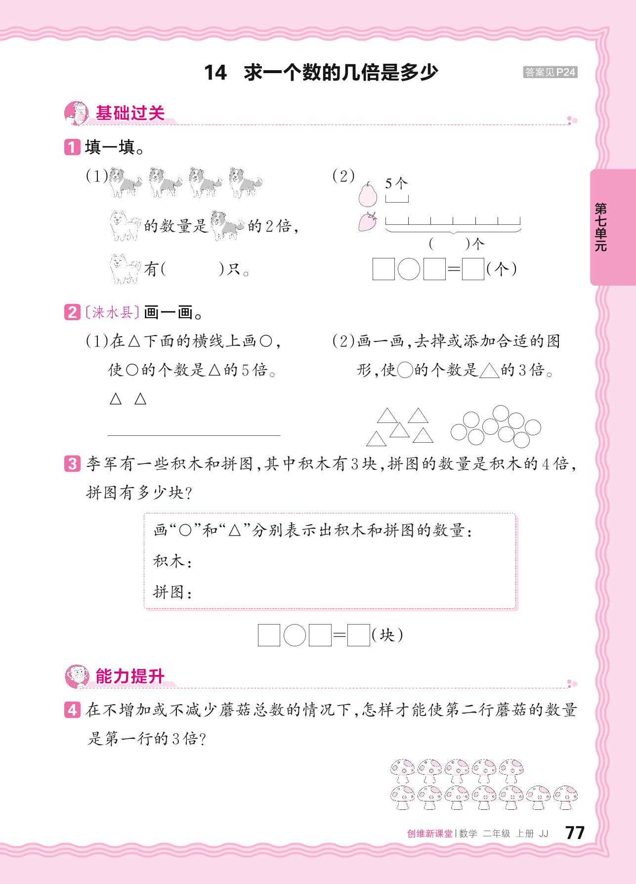 2024秋上册二年级数学冀教版 第七单元 表内乘法和除法(二)——14. 求一个数的几倍是多少