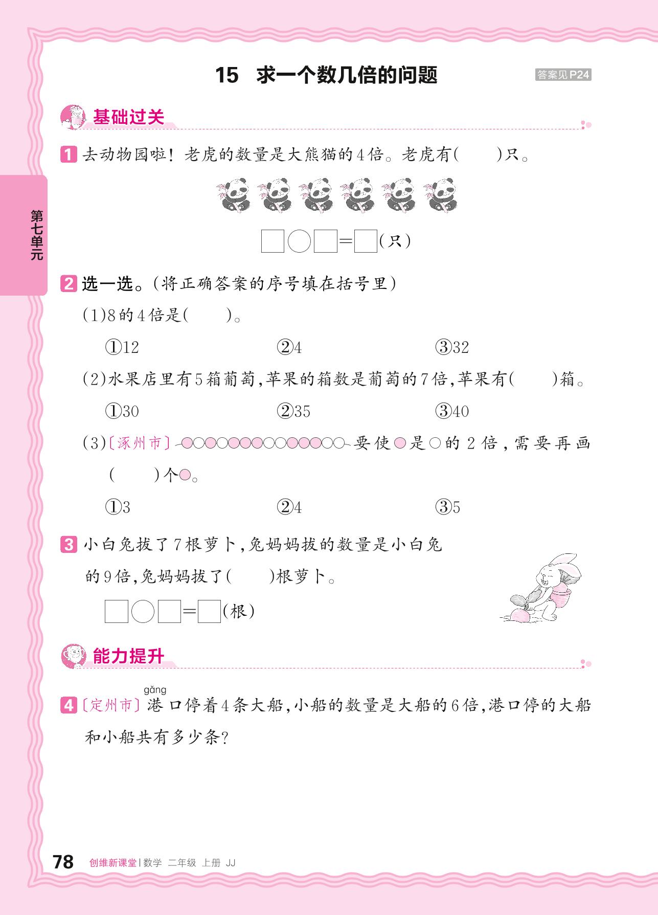 2024秋上册二年级数学冀教版 第七单元 表内乘法和除法(二)——15. 求一个数几倍的问题