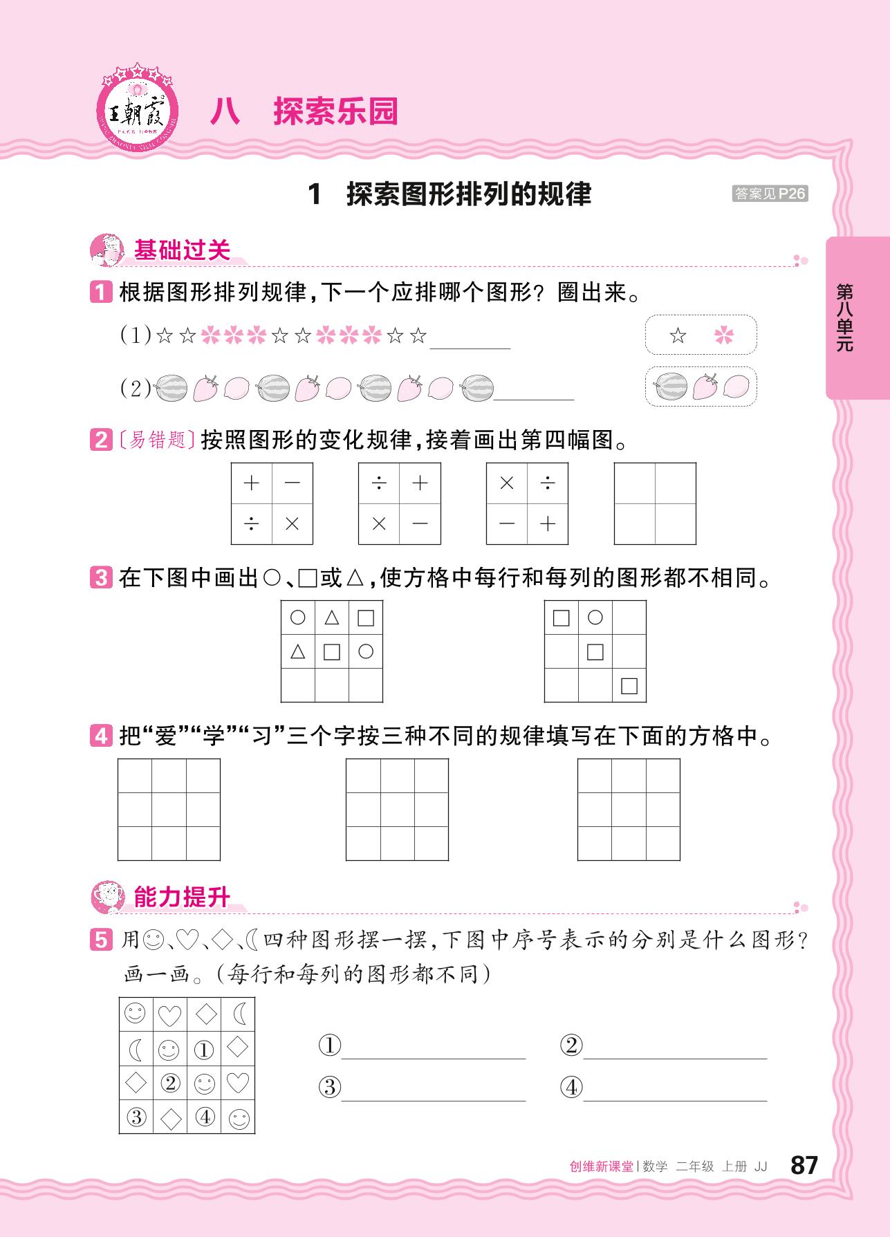 2024秋上册二年级数学冀教版 第八单元 探索乐园——1. 探索图形排列的规律