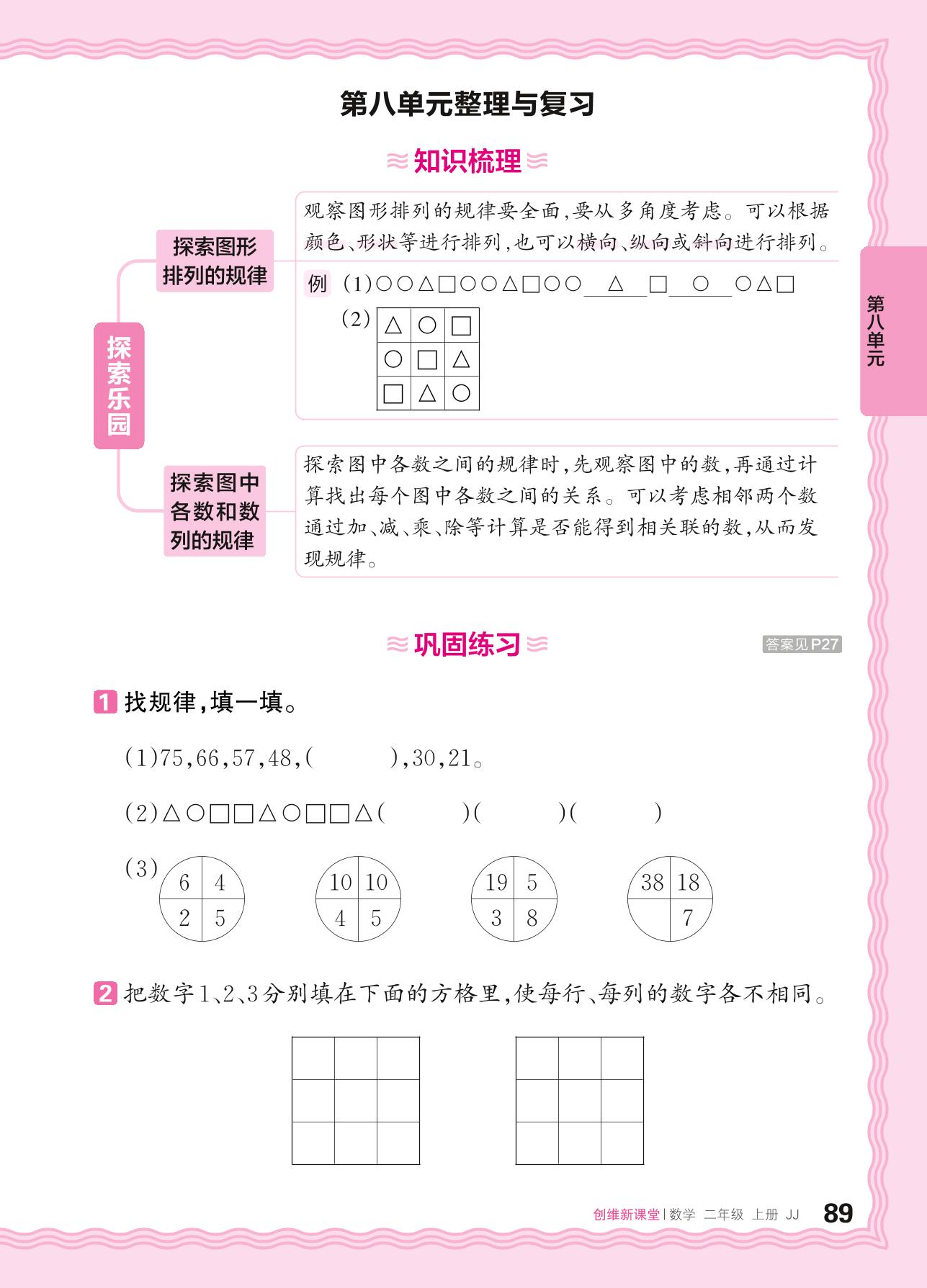 2024秋上册二年级数学冀教版 第八单元整理与复习