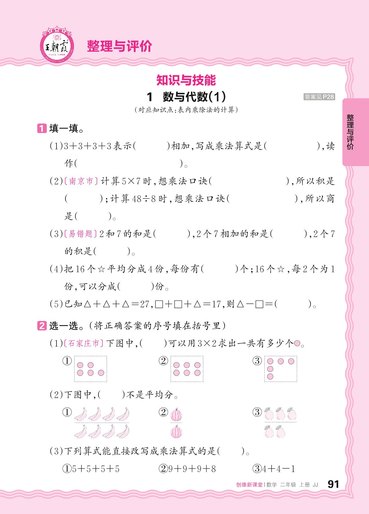 2024秋上册二年级数学冀教版 整理与评价(知识与技能)——1. 数与代数(1)