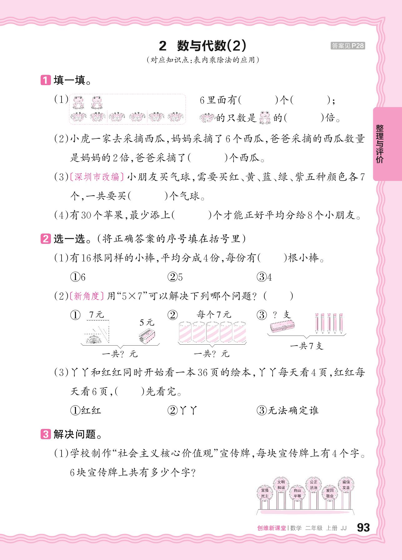 2024秋上册二年级数学冀教版 整理与评价(知识与技能)——2. 数与代数(2)