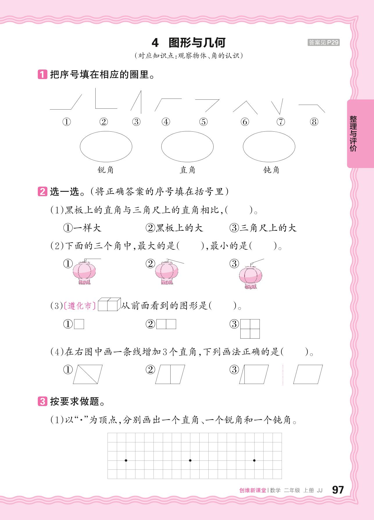 2024秋上册二年级数学冀教版 整理与评价(知识与技能)——4. 图形与几何