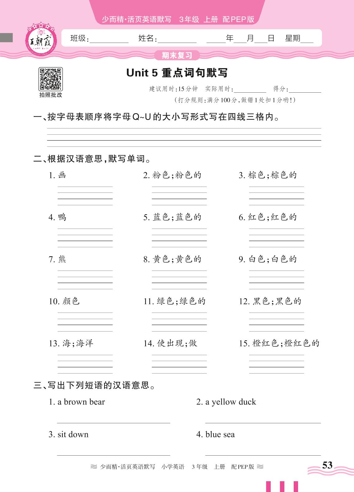2024秋上册三年级英语人教PEP版(三起始) 期末复习—Unit 5 重点词句默写