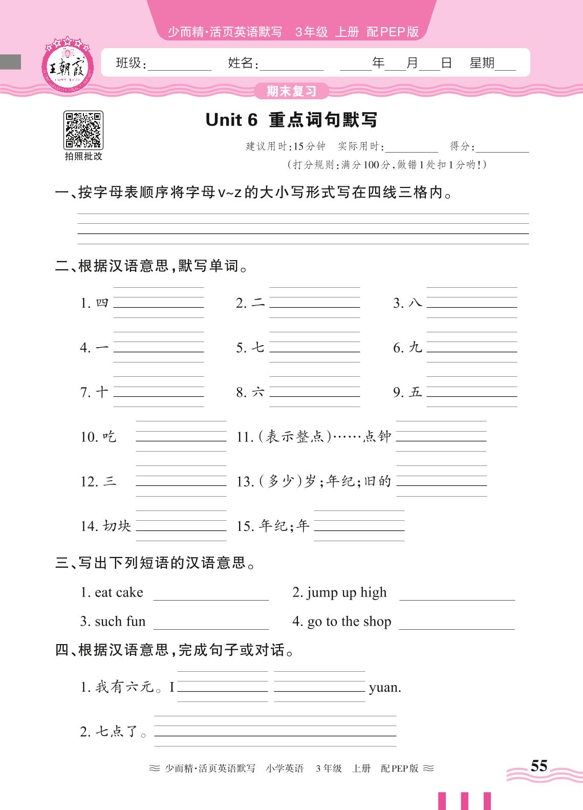 2024秋上册三年级英语人教PEP版(三起始) 期末复习—Unit 6 重点词句默写