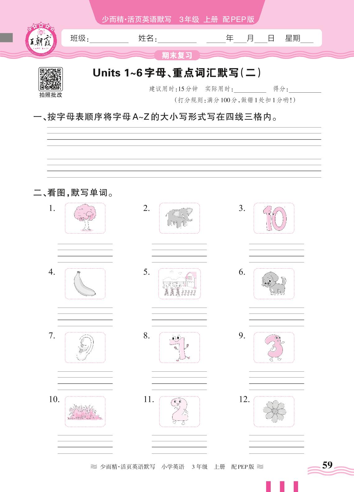 2024秋上册三年级英语人教PEP版(三起始) 期末复习—Units 1~6 字母、重点词汇默写(二)