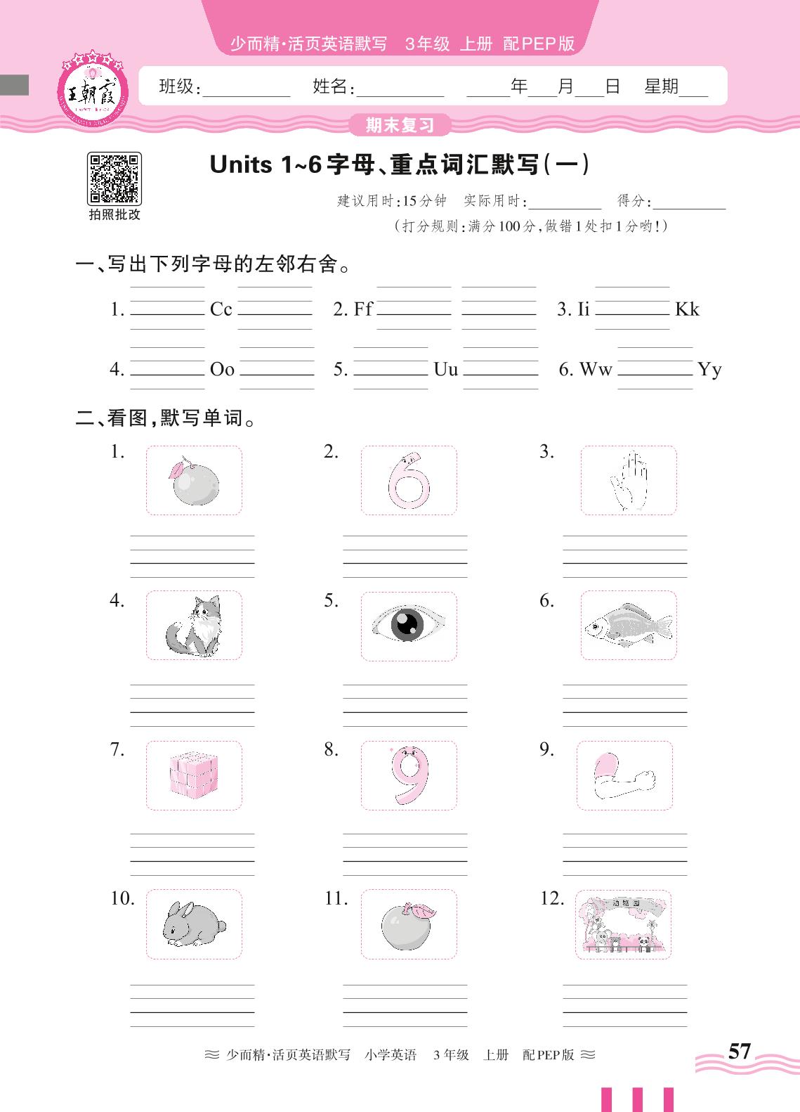 2024秋上册三年级英语人教PEP版(三起始) 期末复习—Units 1~6 字母、重点词汇默写(一)