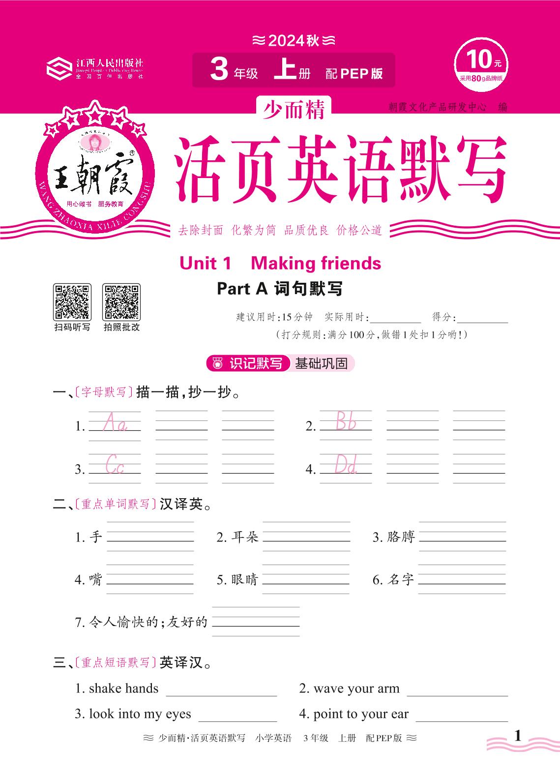 2024秋上册三年级英语人教PEP版(三起始) Unit 1—Part A 词句默写