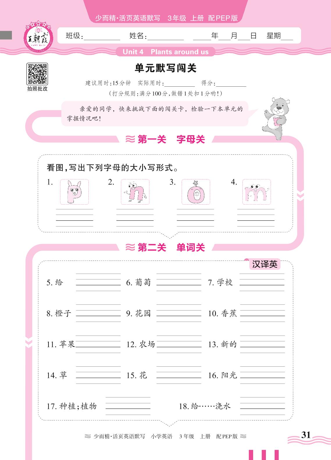 2024秋上册三年级英语人教PEP版(三起始) Unit 4 单元默写闯关