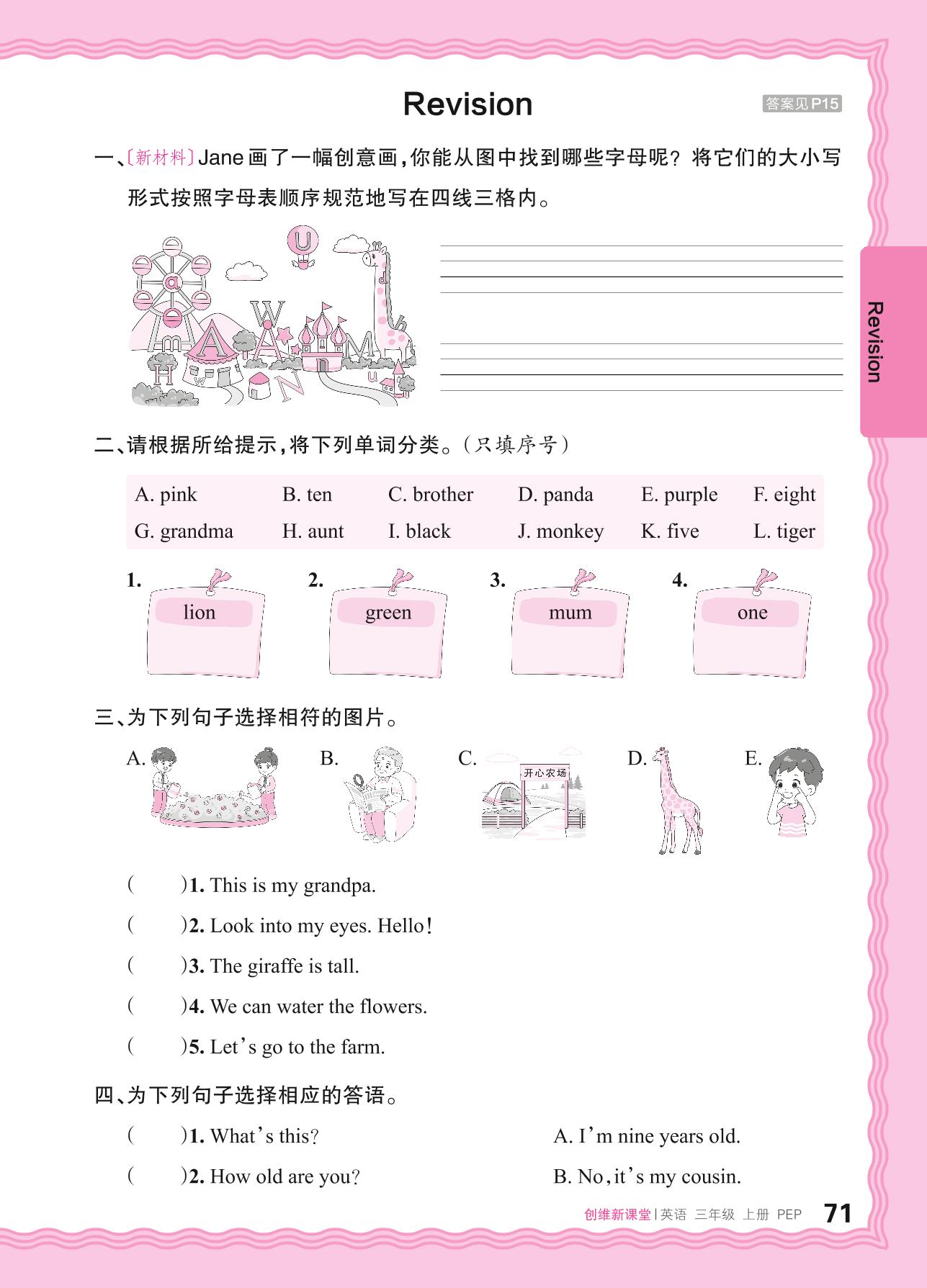2024秋上册三年级英语人教PEP版(三起始) Revision