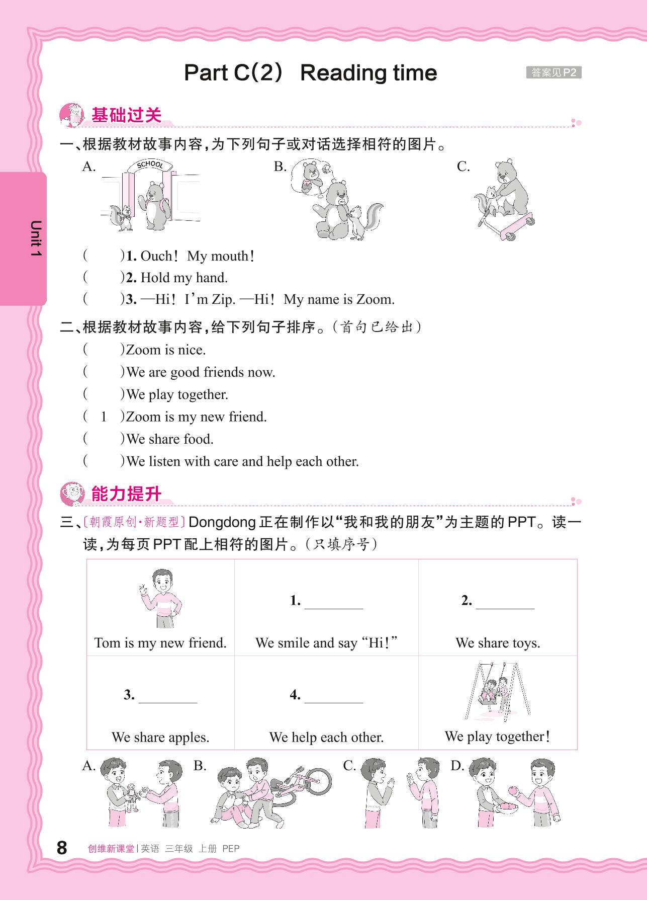 2024秋上册三年级英语人教PEP版(三起始) Unit 1—Part C(2) Reading time