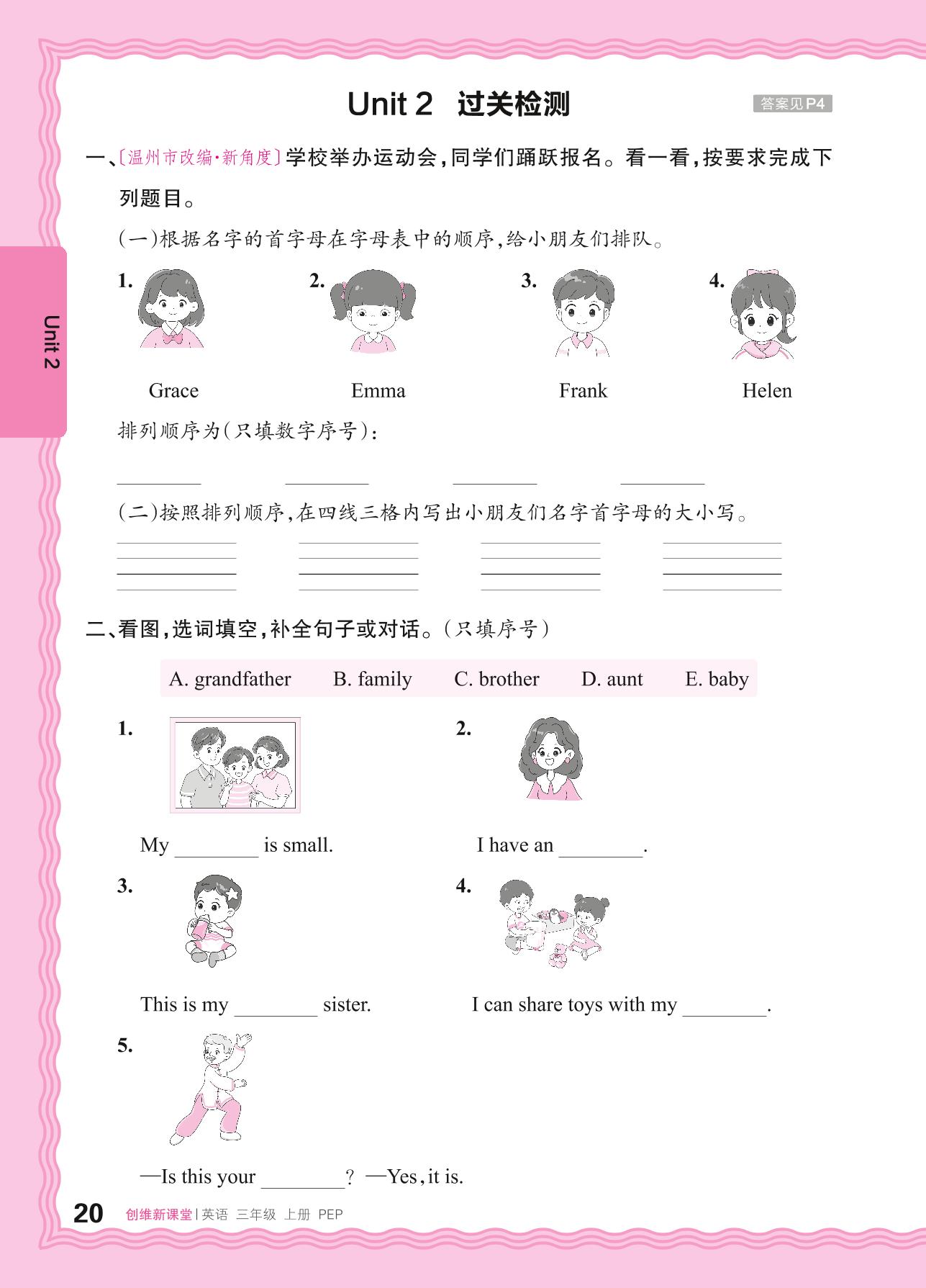三年级英语人教PEP版(三起始)(2024)上册单元卷